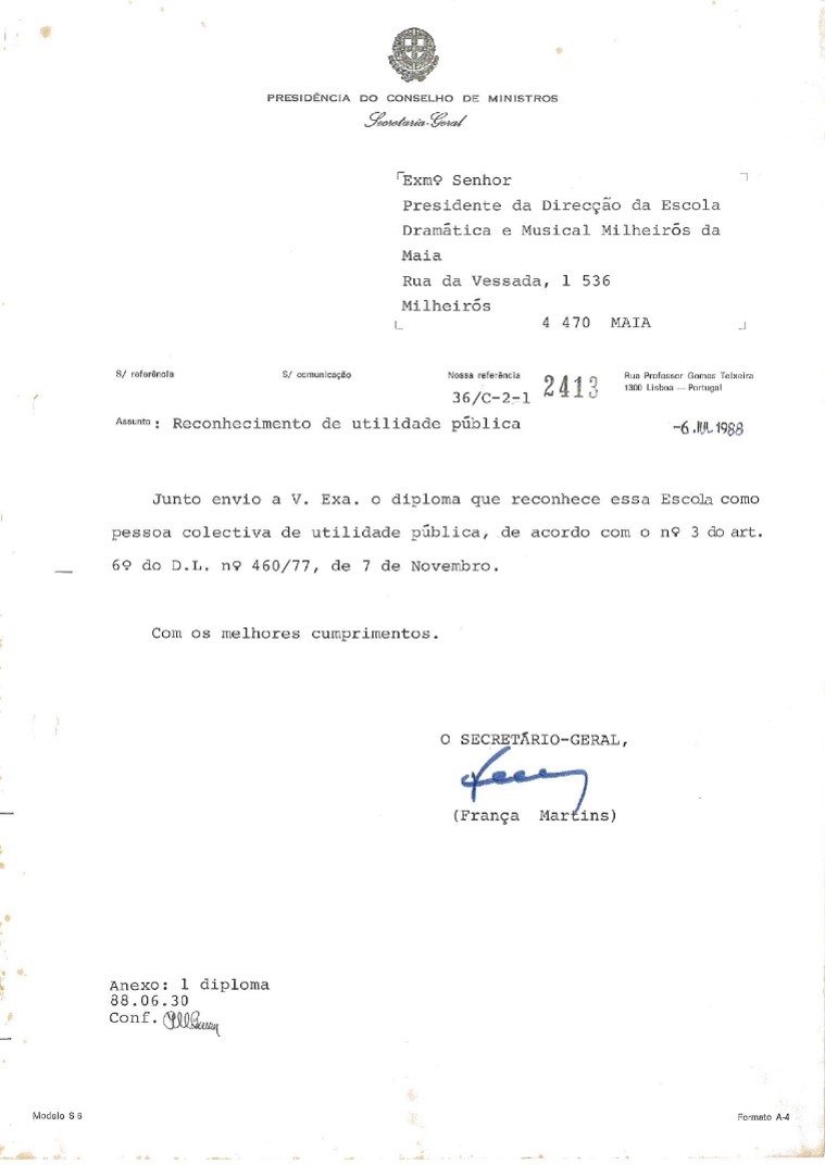 Declaração de Instituição de Utilidade Pública, pela Presidência do Conselho de Ministros